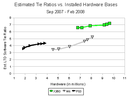 - the larger the userbase, the harder it is to have a huge tie ratio. The tie ratio on a console with larger install base can often be smaller.